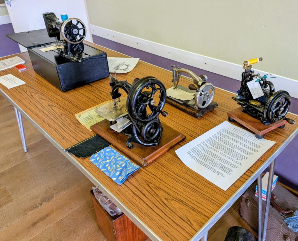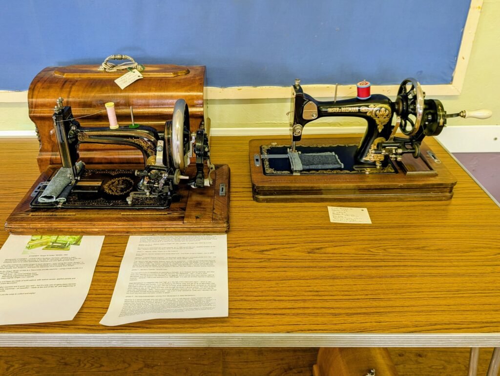 Many other sewing machine manufacturers were mentioned, as well as the innovations which gradually made the machines more sophisticated, including curved needles, presser feet, walking feet (to move the cloth forward).