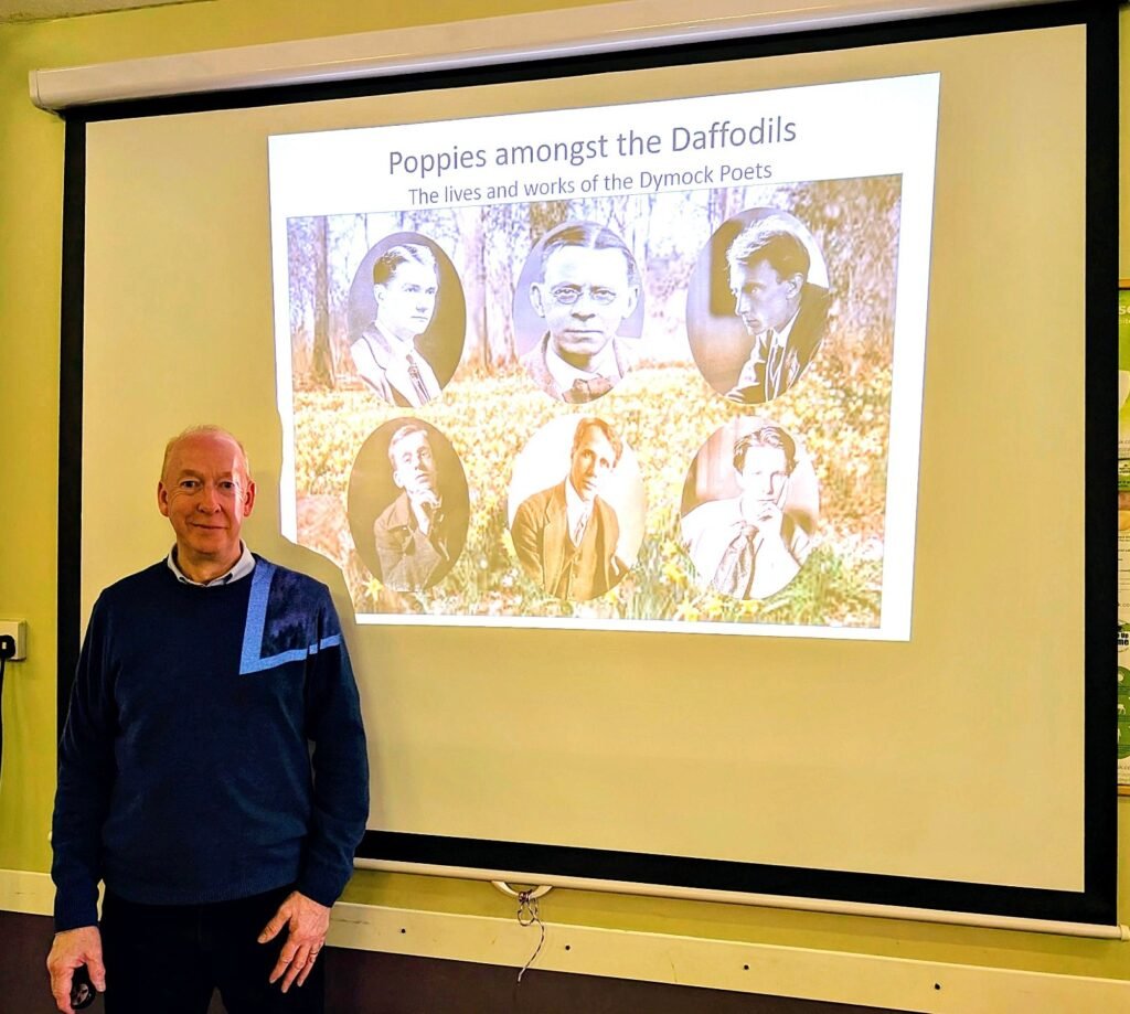 This month’s talk was about the Dymock Poets. Dymock is a small village near Newent, an area well known for its wild daffodils, and now we know that it is also famous for a group of poets in Dymock in the early years of the 20th century.